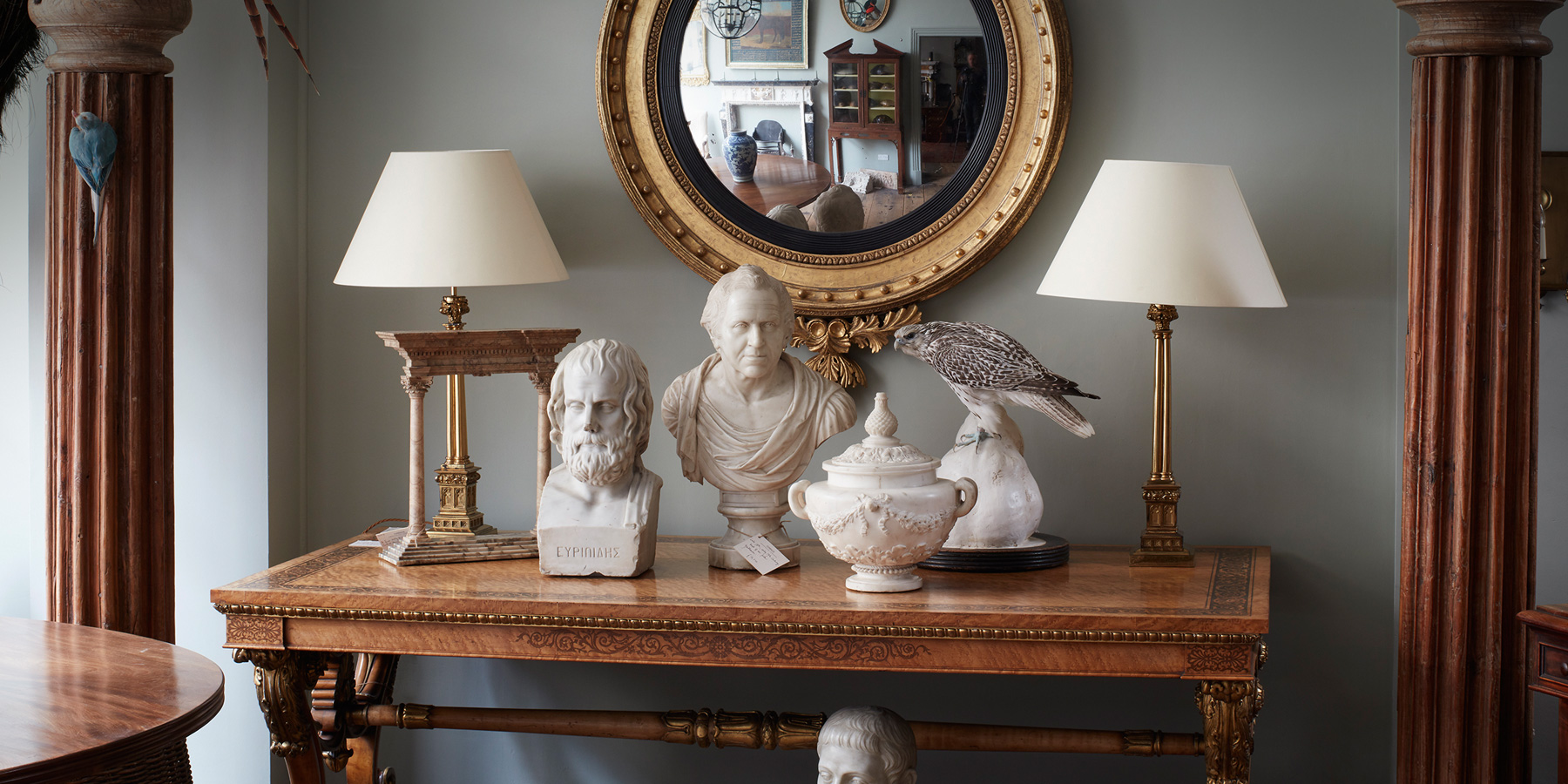 As one of London best antique dealers, Will Fisher and his wife Charlotte Freemantle run Jamb, one of the most distinguished destinations on the Pimlico Road for antiques and exquisite reproductions of 18th and 19th-century pieces, like chimneypieces, lighting, and general furniture.