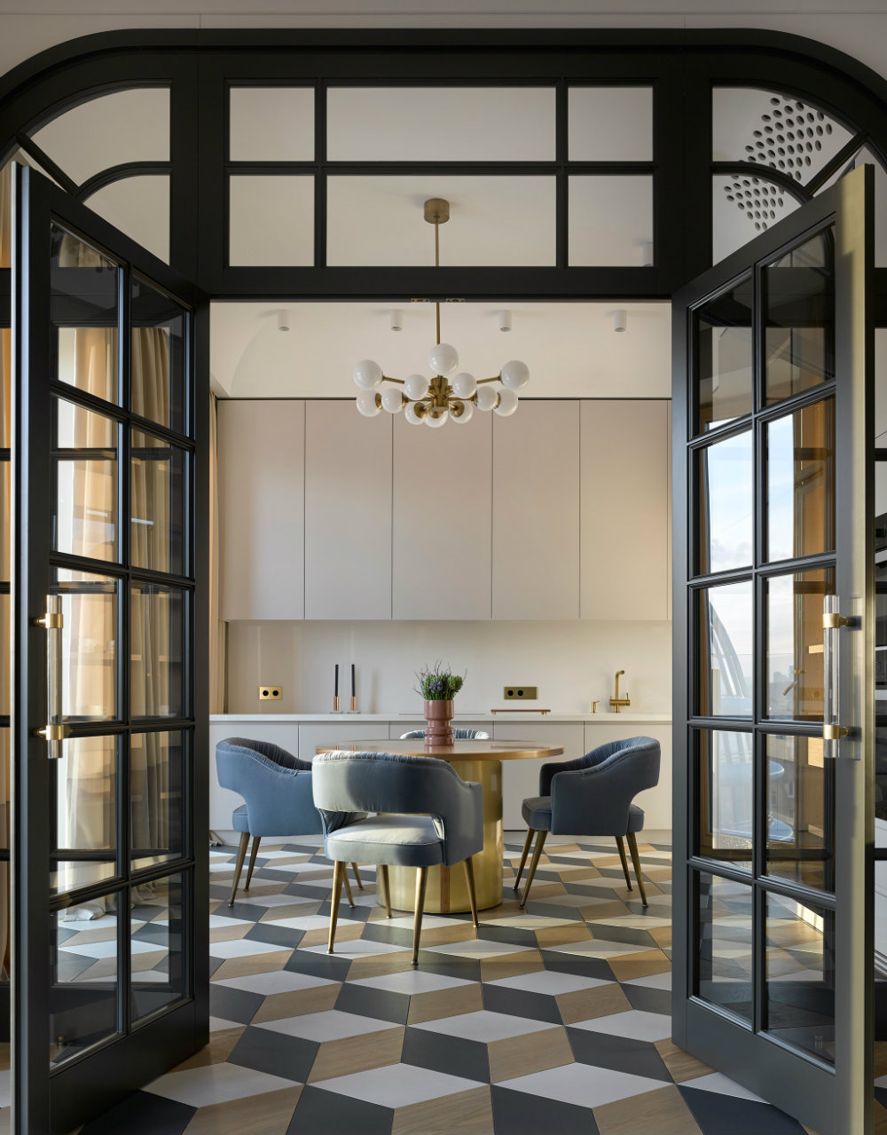 This modern apartment is filled with classic details that give it a timeless and rich appeal.