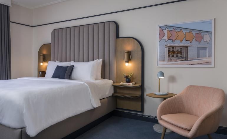 Hu. hotel has just opened in the city of Memphis, known for Blues music and barbecue. The hotel provides the style foundation for Brooklyn-based designers HOME Studios, who layered local references to create a truly textured look.