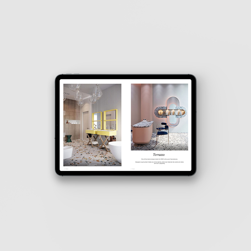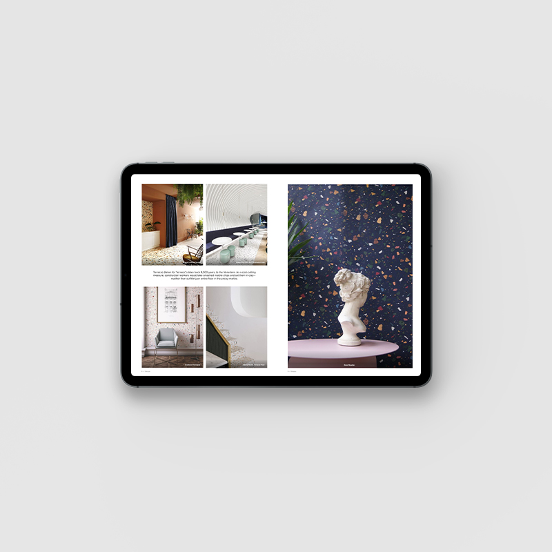 FREE DOWNLOADTerrazzo is making a major comeback as one of the hottest interior design trends you'll be seeing everywhere. Used throughout history, first in Venetian palazzos, Milanese lobbies, and then in Miami and Memphis art deco buildings, today terrazzo is applied not only in flooring but also as a material of choice for furniture and lighting.